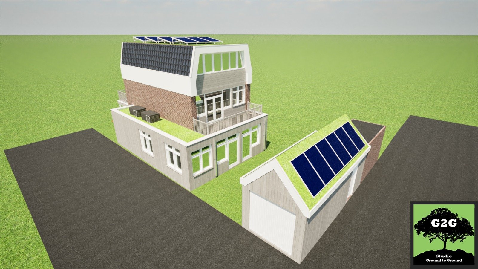 • Solar panels and green sedum roof