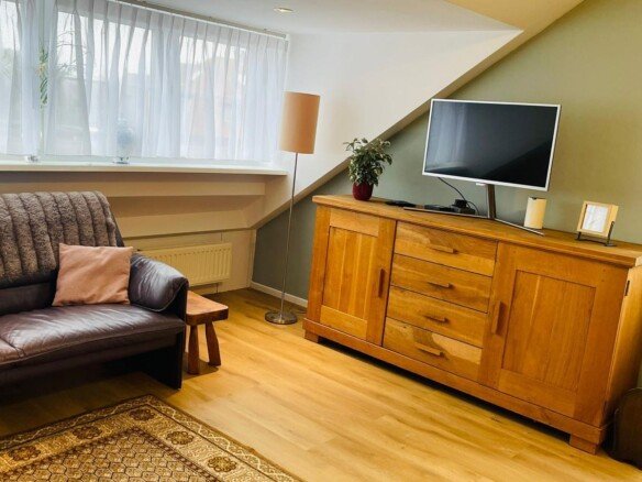Deze nette en goed onderhouden bovenverdieping beschikt over een eigen opgang via een trap en is volledig gemeubileerd. De indeling bestaat uit een woonkamer, slaapkamer, kantoorruimte, keuken en badkamer. De woning is voorzien van een wasmachine, vaatwasser en koel-vriescombinatie.