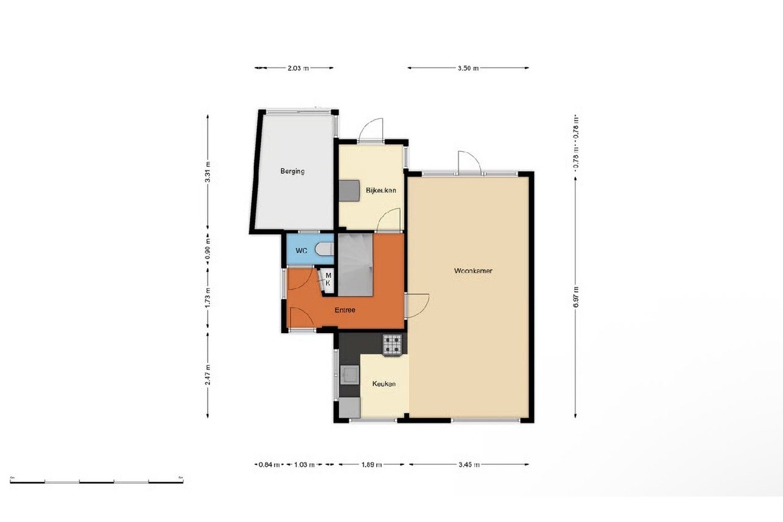 De meetinstructie is gebaseerd op de NEN2580 en bedoeld om een uniforme indicatie van de gebruiksoppervlakte te geven. Afwijkingen door interpretatie, afronding of meetbeperkingen zijn niet volledig uit te sluiten.