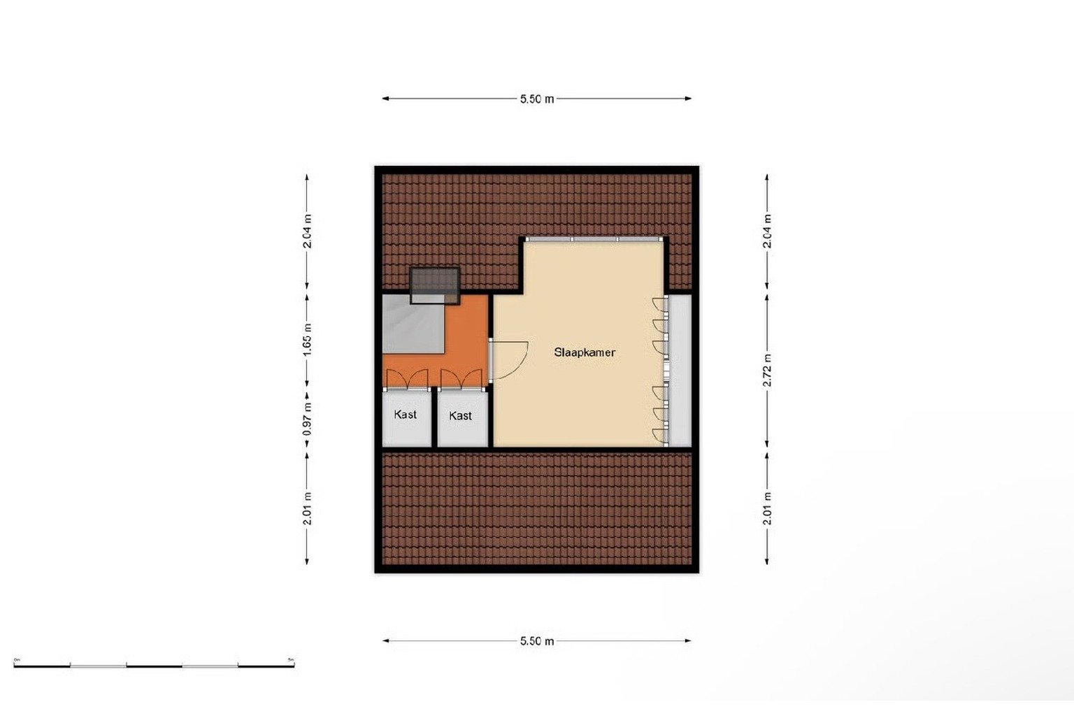 - Soort dak Zadeldak bedekt met pannen